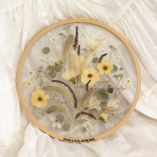 שימור זר כלה בעיצוב אישי - מסגרת עגולה (ללא זכוכיות)