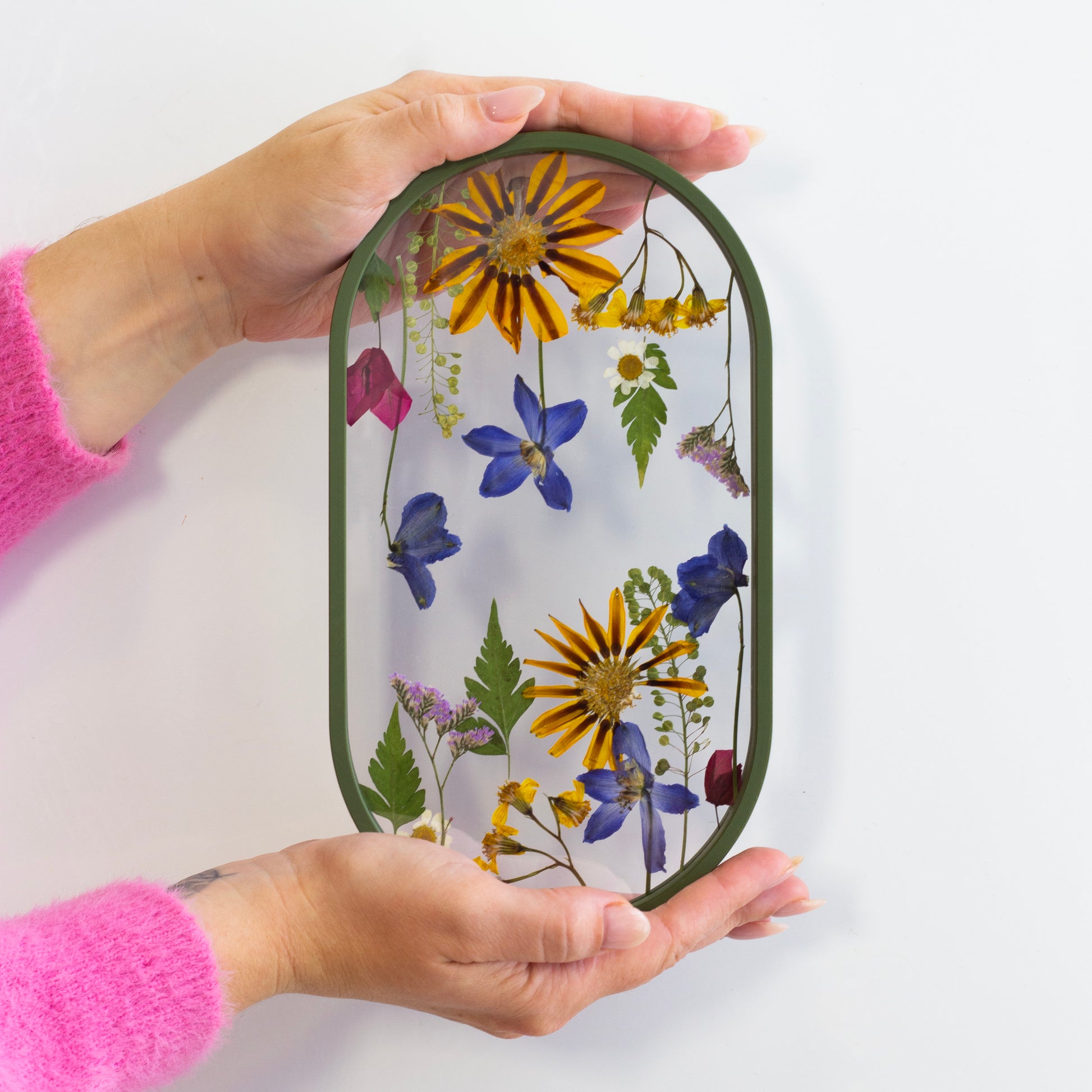 מסגרת פרחים מיובשים אובלית - ירוק זית