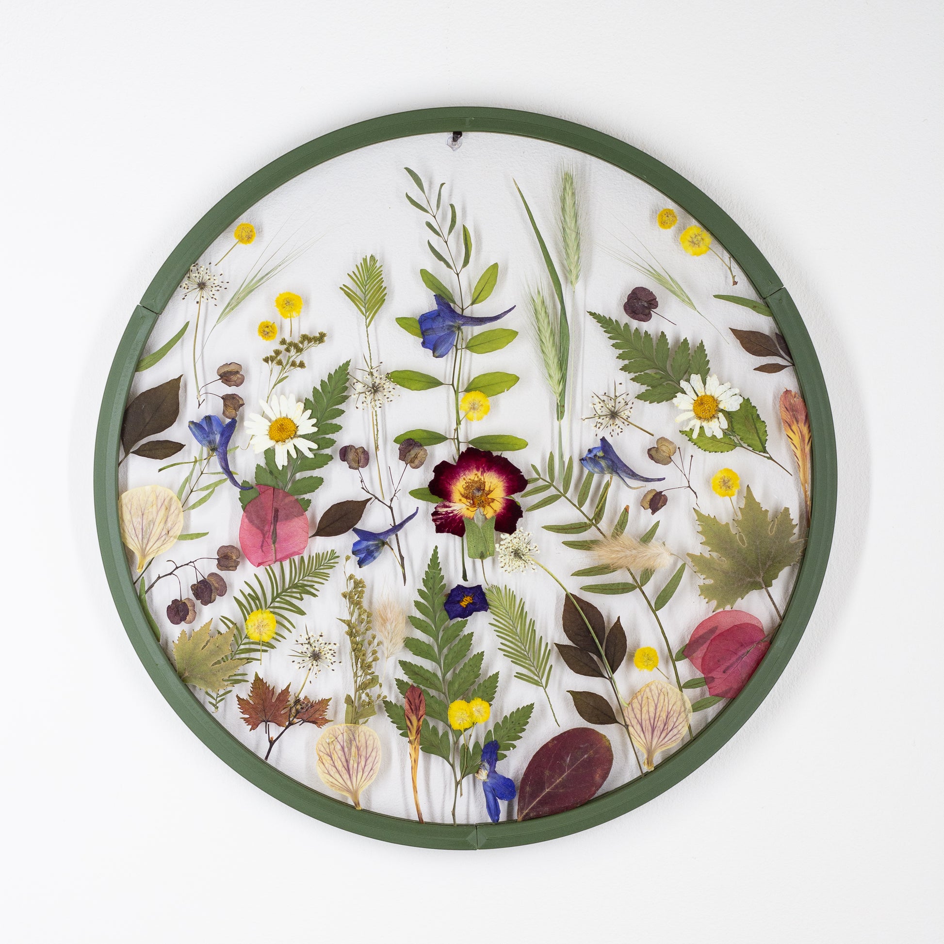 מסגרת פרחים מיובשים עגולה גדולה- ירוק זית